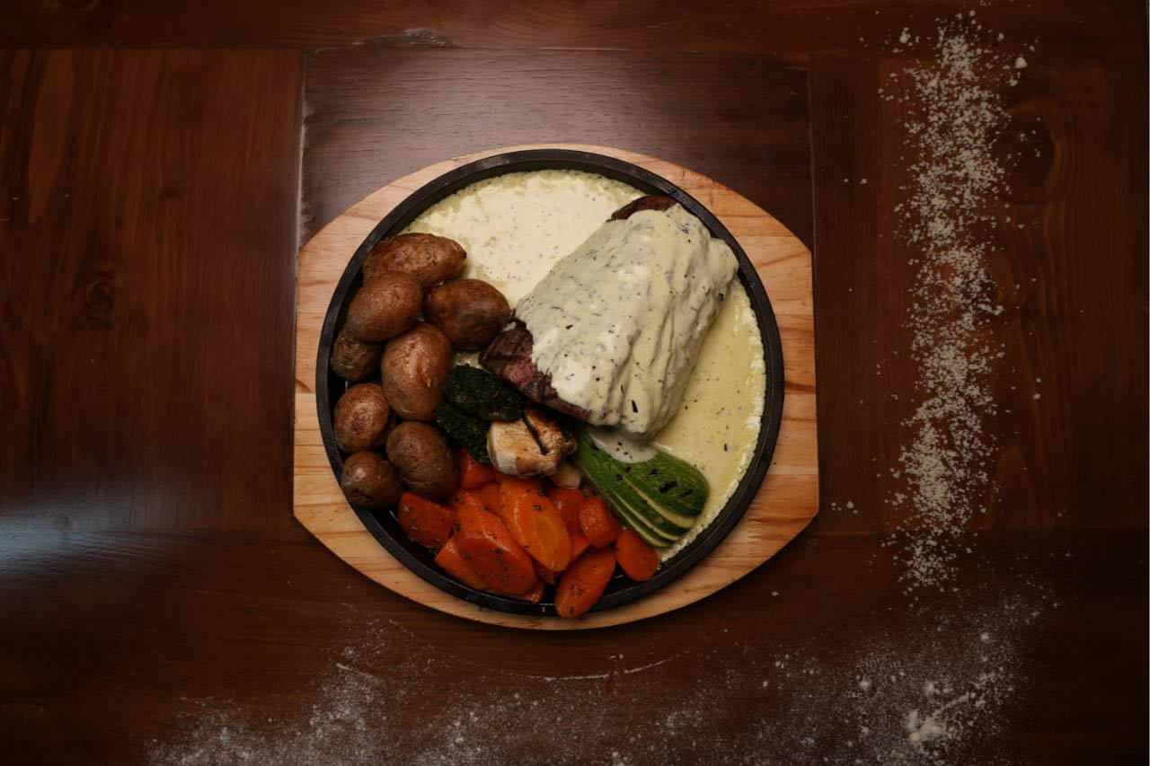 Prime wagyu beef marbled 3 months, served with mini potatoes flavoured with rosemary.